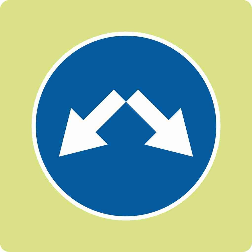 Дорожный знак с флуоресцентной окантовкой 1.11.1 Опасный поворот (Б,1200x1200 мм)