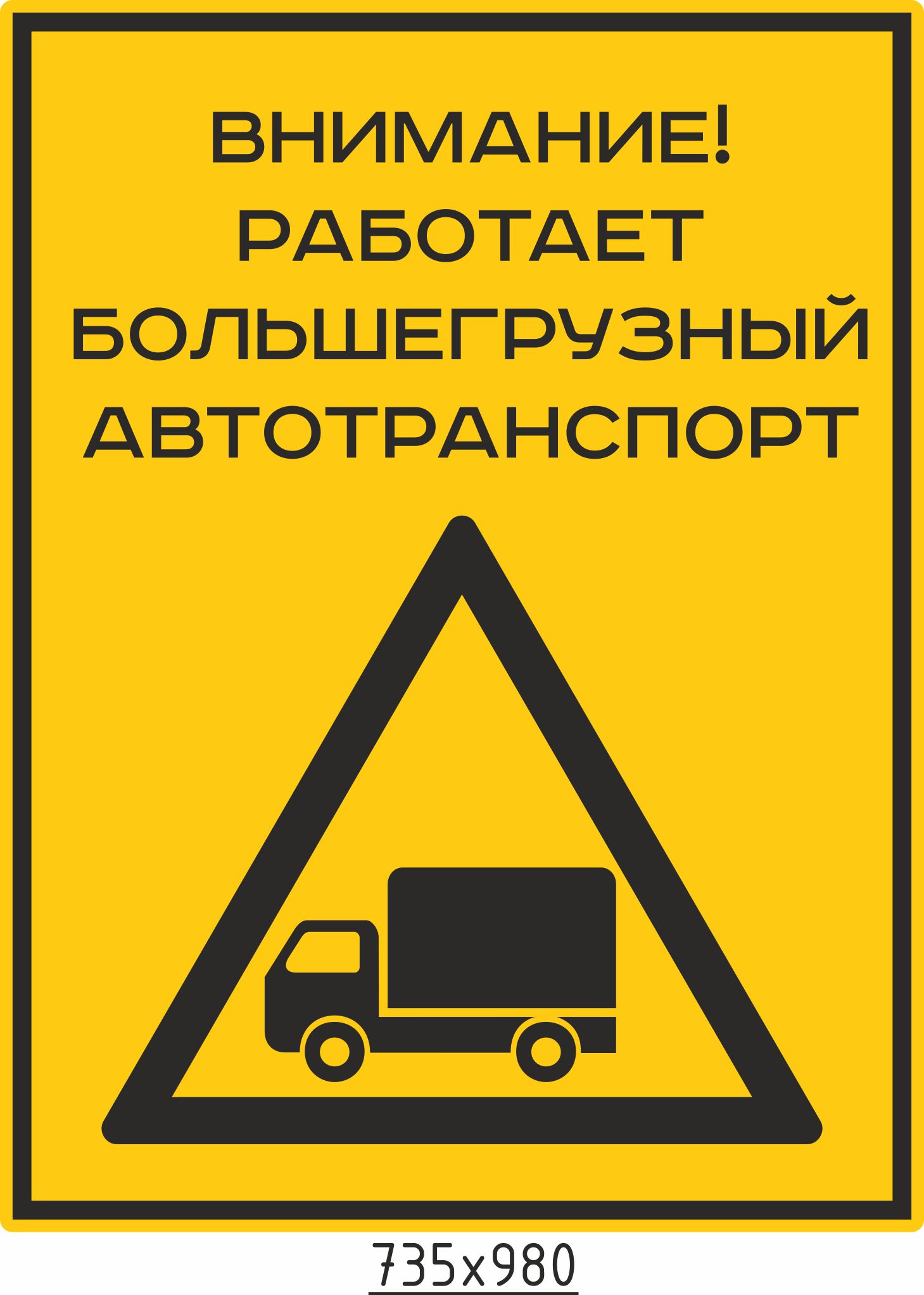 Знак индивидуальный Внимание! Работает большегрузный автотранспорт