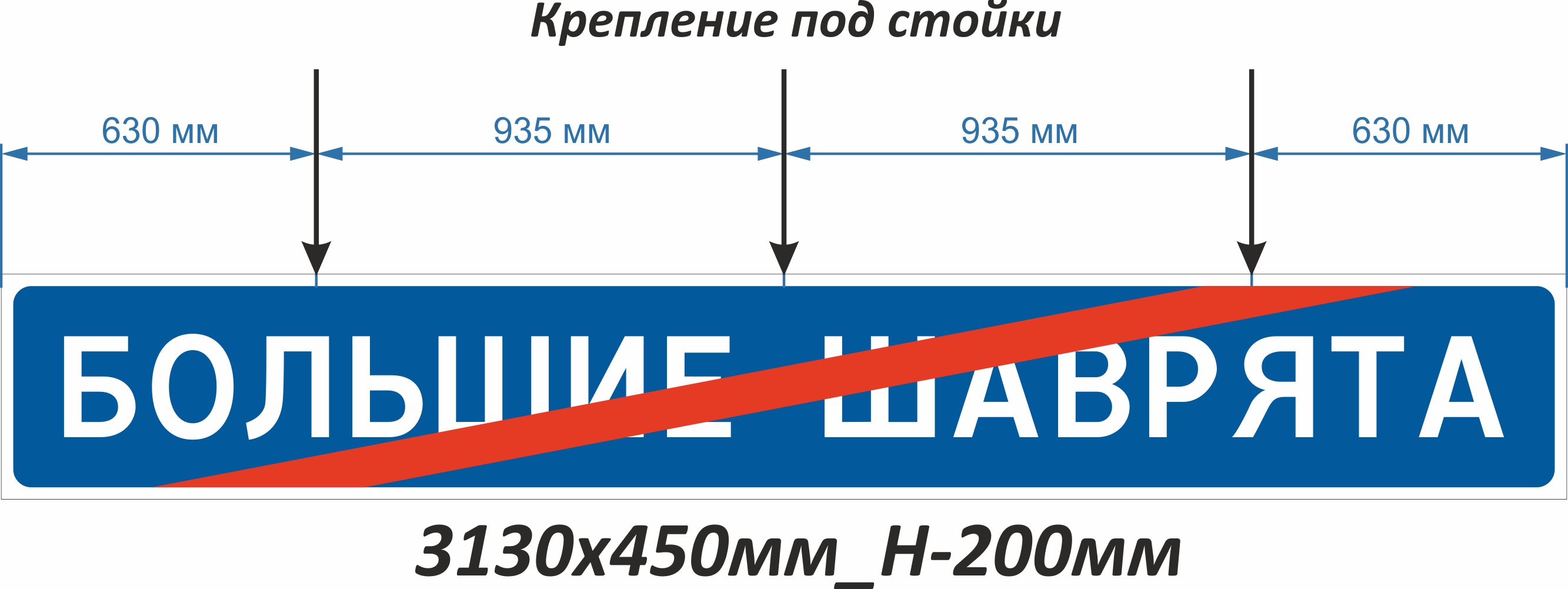 Дор. знак индивидуального проектирования (3 130х450, Металл 0,8 мм оц., пленка световозвращающая типа Б, Рама под 3 стойки, ГОСТ Р 52290-2024)